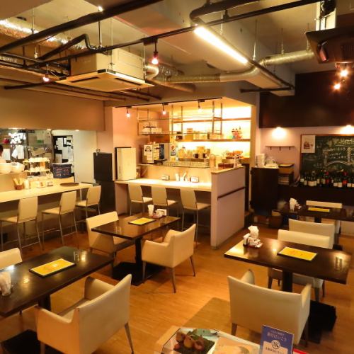 白を基調とした開放感あふれる店内!照明や間接照明の光が柔らかく反射し、落ち着いた空間でごゆっくりとお食事をお楽しみいただけます♪キッチンはオープンキッチンとなっており、お料理を待っている時間も飽きさせない作りになっております◎